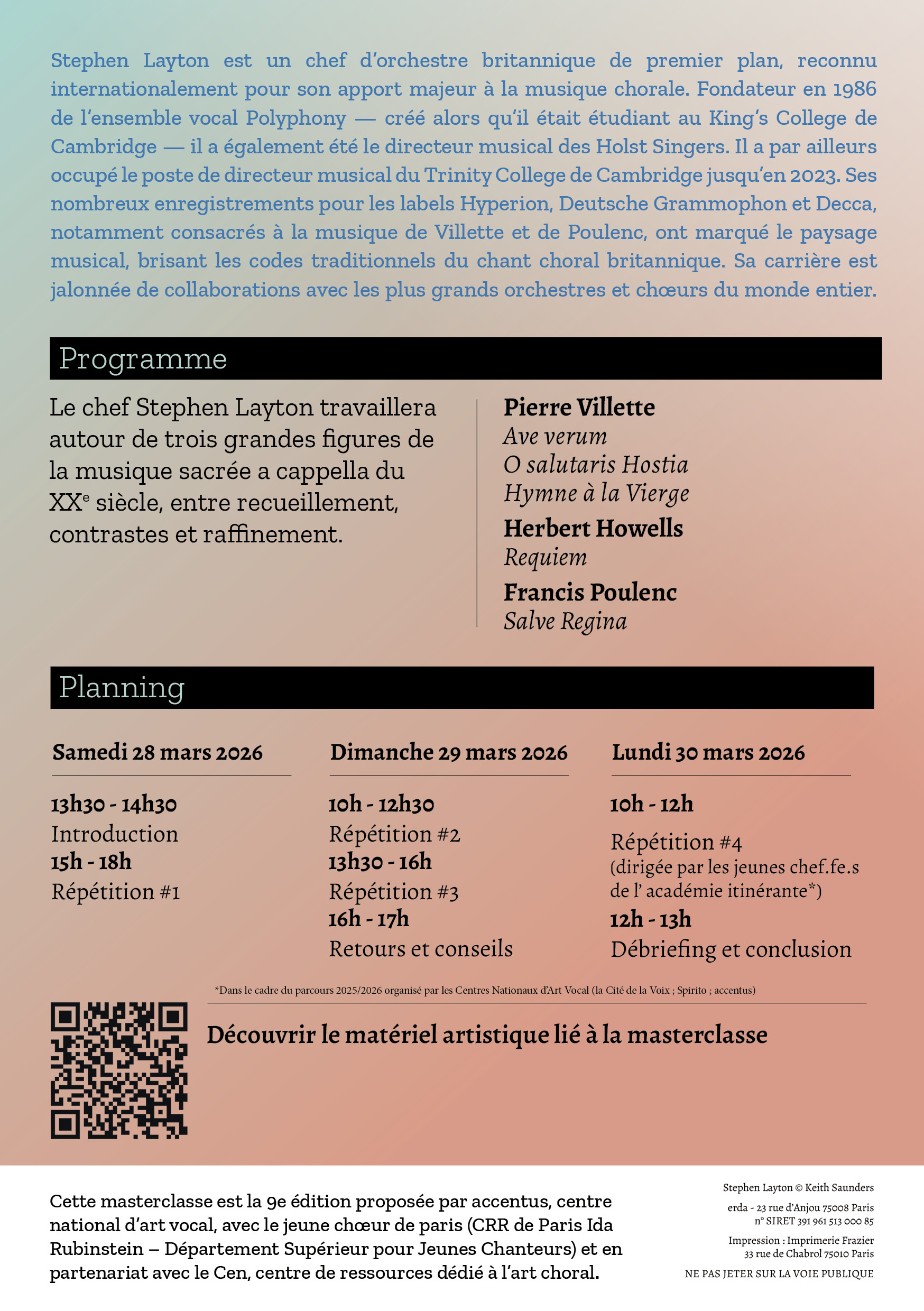 accentus et le Département Supérieur pour Jeunes Chanteurs du CRR de Paris proposent à leurs étudiants une masterclasse avec Stephen Layton.
